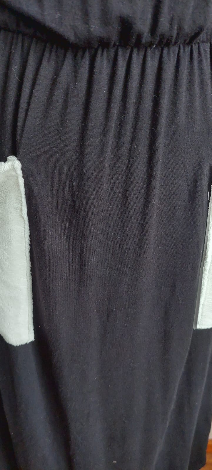 Maravilloso vestido negro con bolsillos en color blanco . Modelo de tela de algodón EN Talla M elasticado. Posee cintura elasticada .