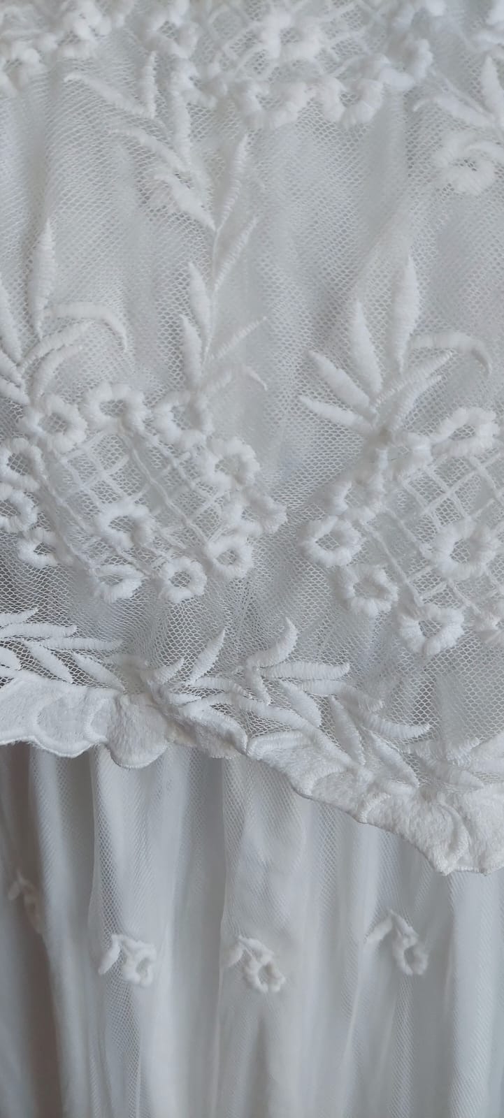 Modelo largo de corte recto ,elasticado con encajes en la parte superior