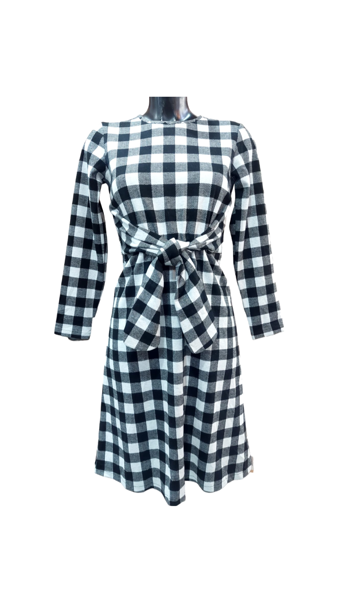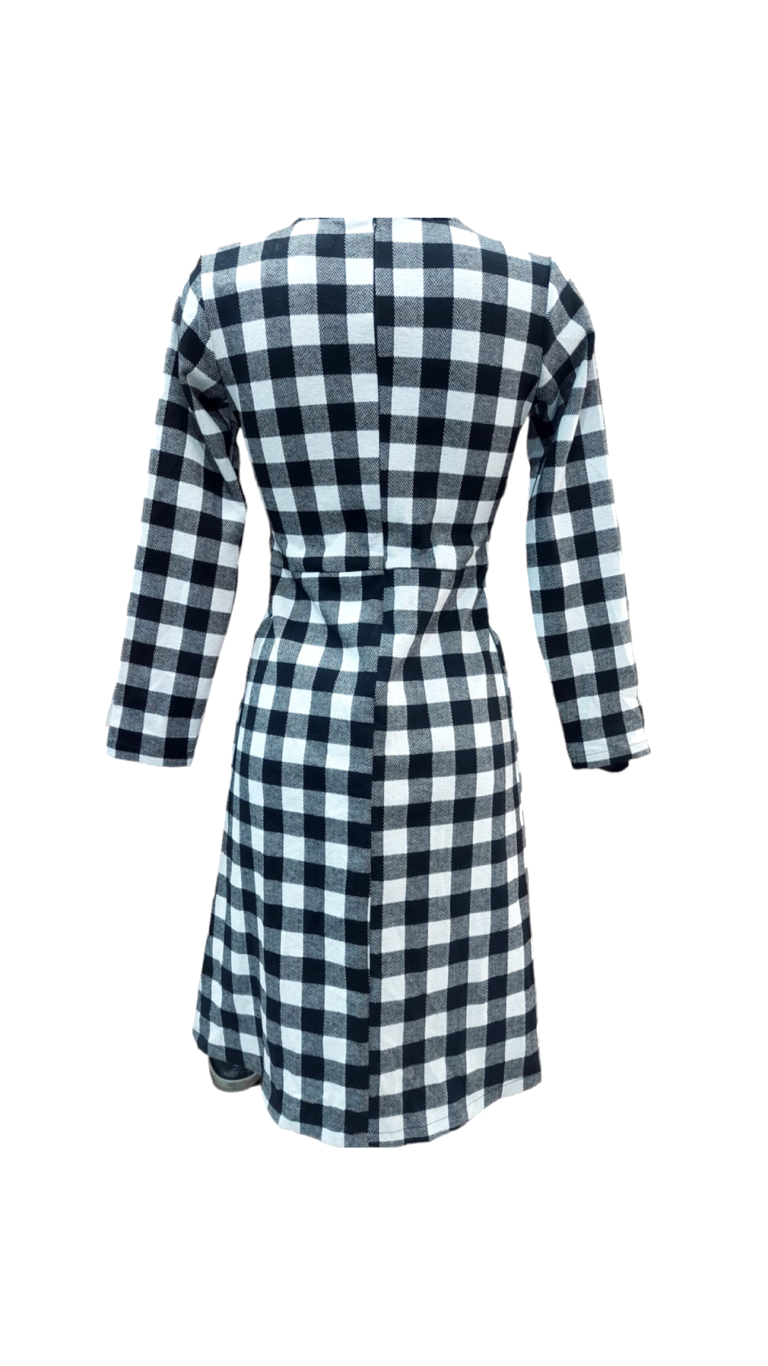 Hermoso vestido en cuadrille en color negro con blanco en talla S. Modelo de corte evasé estilo coquete.